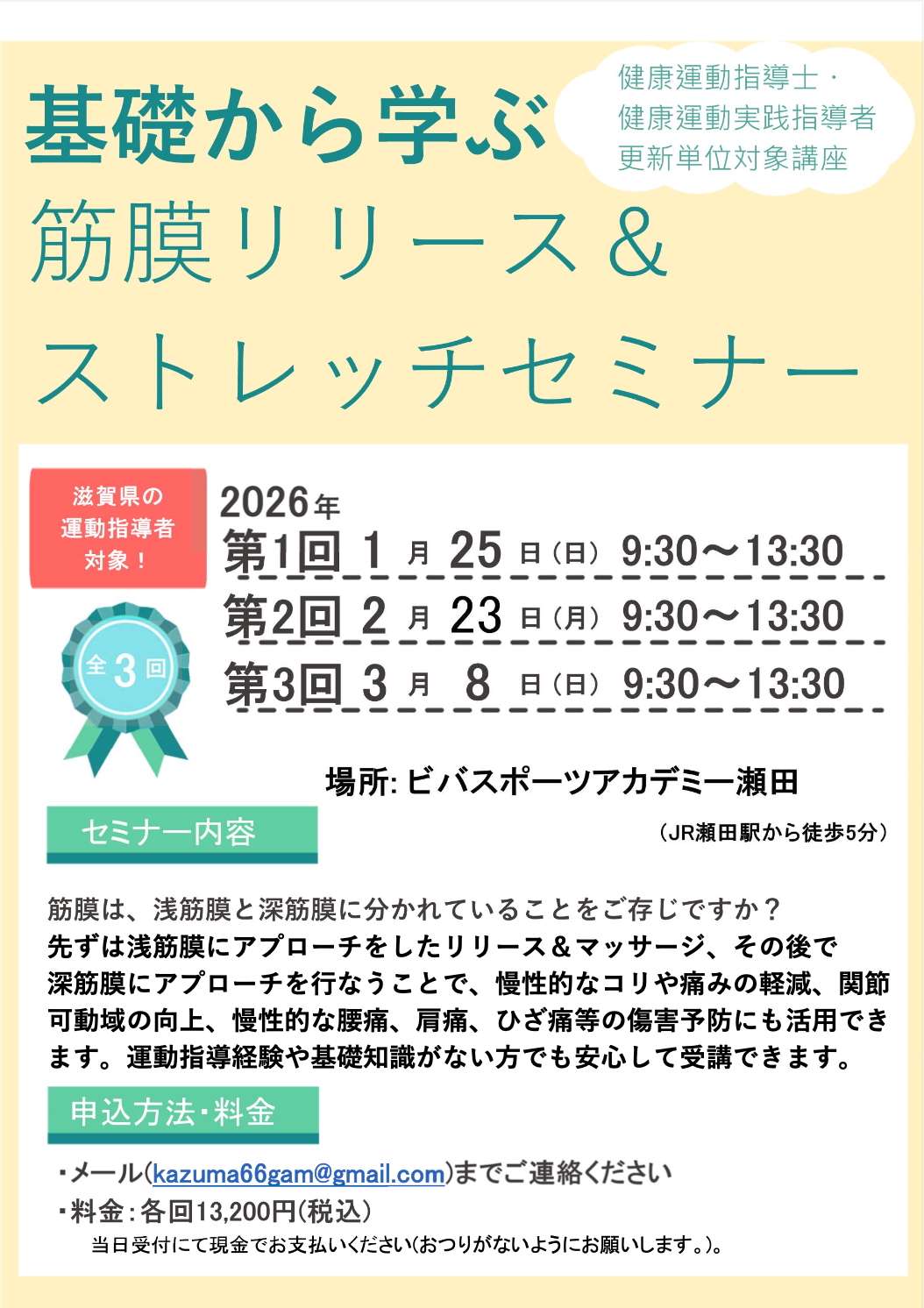 セミナー名:基礎から学ぶ 筋膜リリース&ストレッチセミナー